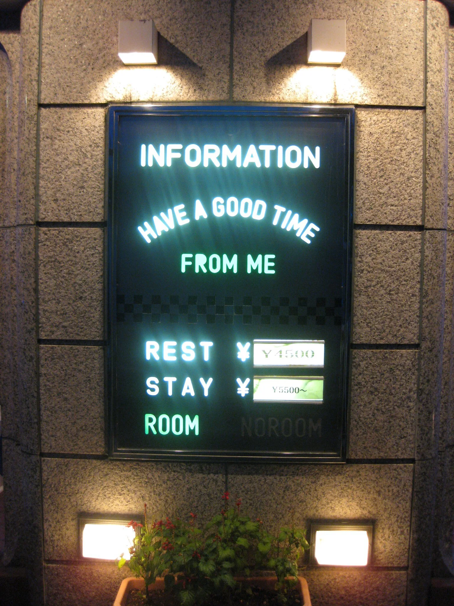 In many cases, Love Hotels have recognizable signage apart from their usual and obvious hot coloured LED entrances on the outside of the entrance with the two or three rates they offer for patrons wishing to get information without having to conspicuously enter. Rates vary from place to place and, in some instances have reduced prices for those wishing for a bargain, i.e. early morning to mid-evening. Check-In and Checkout times are often later than standard hotels. Finally, if you ever come across a hotel that says [Adults Only], it’s like a Love Hotel!
