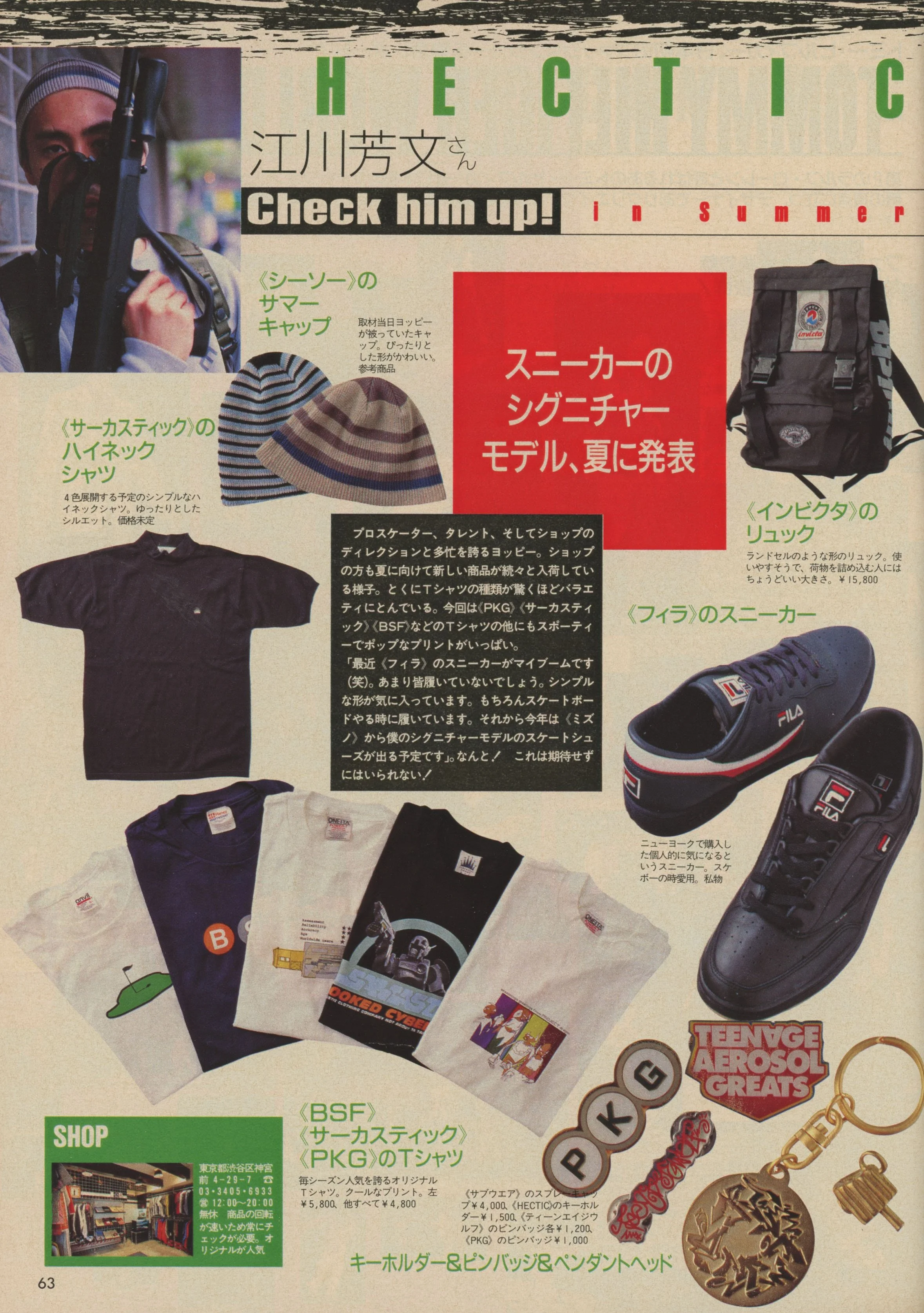 T: There was a store and brand called HECTIC, they sold their own original brands such as Regular, PKG and Seesaw. Also there was this shop called FAMOUZ, the main location for a brand with the same name and a store called Tokyo-Do. They sold punk style goods and merchandise. They also sold work by artists from overseas like KOZIK that created band and event silkscreen posters.